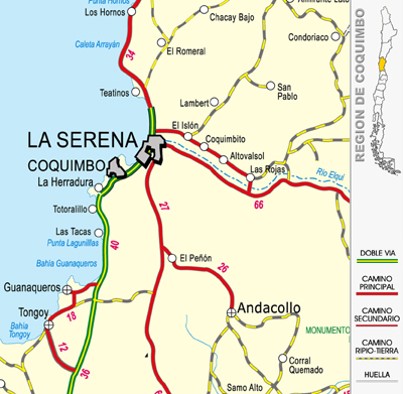 Se encuentran ubicadas a 12 minutos de la plaza de Armas de La Serena, en el sector San Roque, intersección entre la ruta D-201 y D-255. Estas rutas están completamente pavimentadas. Estas están ubicadas a pasos de estas rutas.